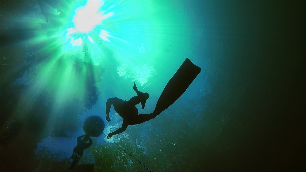 Photo: Alex St Jean During the last days of the Caribbean Cup we had a couple visitors around the bottom plate. As one of the judges, Elvis had access to this amazing footage Freedive Tulum instructor Elvis James ascending into the light in a local cenote to Tulum