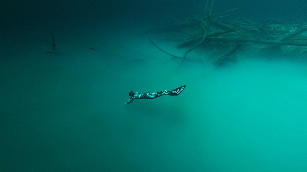 Not a deep cenote, however one with the clearest water of any around. This cenote can offer clarity of 50m+ visibility. Truly amazing World champion freediver Alessia Zecchini came to spend 10 days exploring the cenotes of the region with Freedive Tulum. Alessia knew she was in safe hands with competition Chief of Safety, Elvis James Freedive Tulum owner Elvis James playing in the amazing cloud layer at cenote Angelita. This cloud sits at 30m depth.