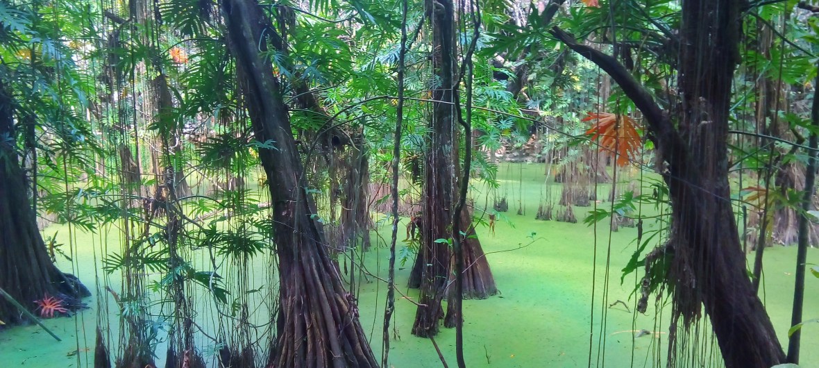 A cenote is a naturally occurring opening in the ground that gives access to the water table/groundwater below. The limestone bedrock of the peninsula has slowly eroded away to create elaborate and vast cave systems.